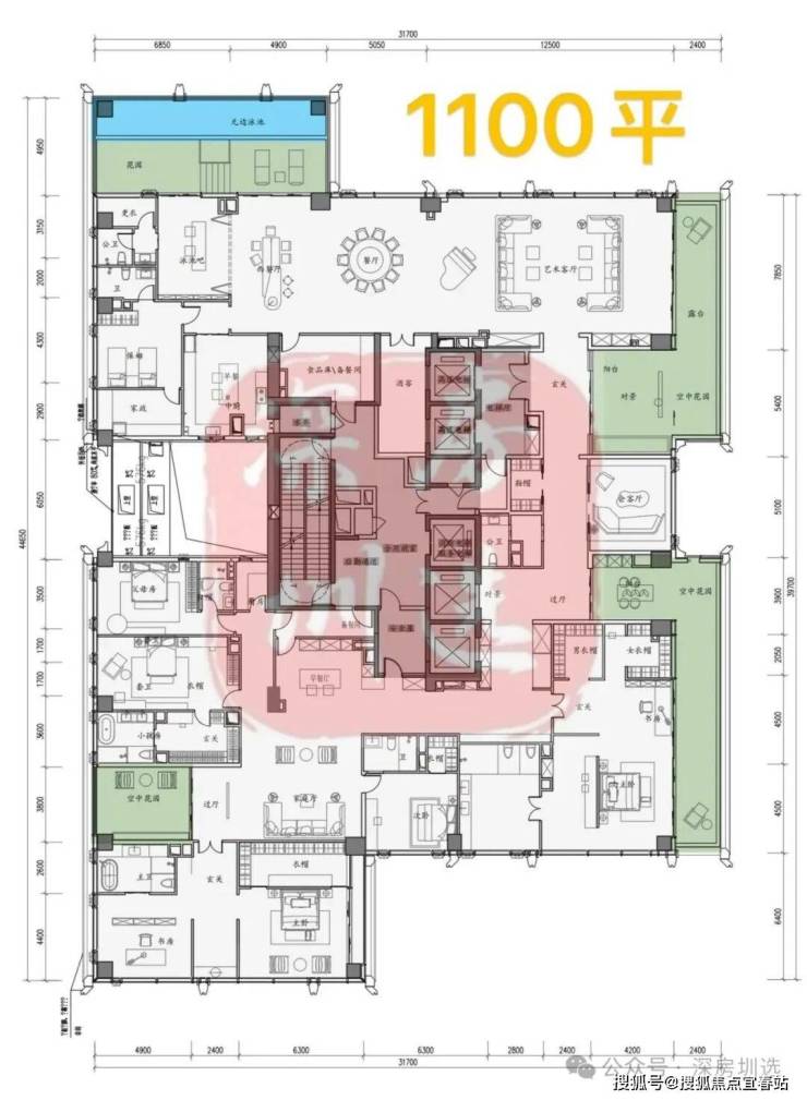 ④顶楼整层不是复式,约1100㎡顶奢大平层仅两套