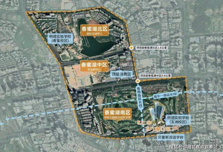 规划香梅路/福华一路延长线穿深圳高尔夫公园而过, 将实现香蜜湖北、中、南区高效联动,未来约1公里直达中区,与国际交流中心等四大地标为邻,执掌城市发展命脉。