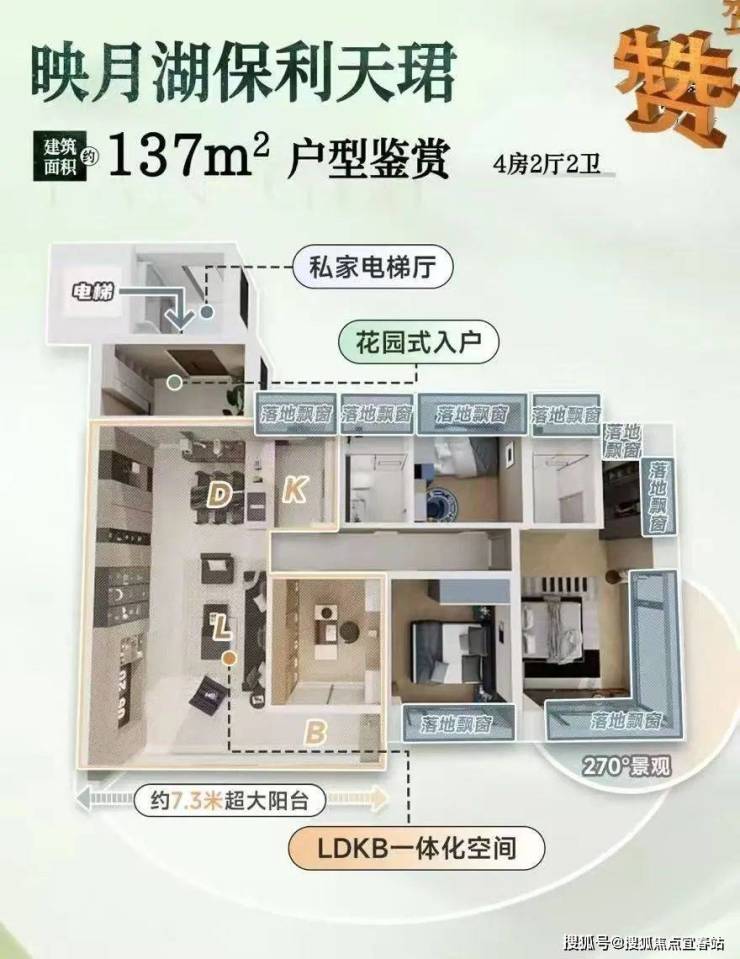 2, LDKB空间优化:市面上很多新规产品只是盲目放大空间,却忽略了客户的实际需求。映月湖保利天珺结合客户实际生活场景,对新规空间的打造给出了完美答卷。餐厅开间约3.15米,可根据需求放置1.8米长桌或1.5米圆桌,轻松满足8 - 10人用餐;厨房整体面积约7㎡,结合U型岛台餐吧设计,两位大厨也能各有空间“话事权”,还能随时与客厅的家人互动;厨房配备老板三件套,灶蒸炸烤一体机、抽油烟机搭载制冷 + 新风 + 换气功能,还能联动灶台,15套超大洗碗机,最多可放109个餐具,还有168小时长效储存,满足家庭日常烹饪和清洁需求;阳台深度约1.8米,不仅能放下专业跑步机,还能布置露营桌椅,让业主在享受运动的同时,也能欣赏到窗外的美景。