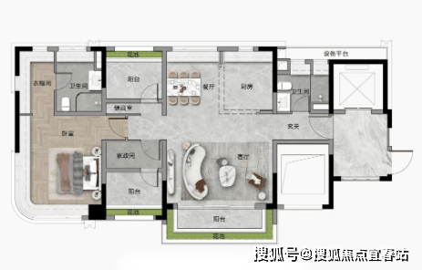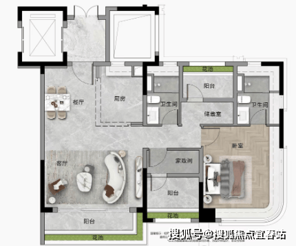 所有户型均采用LDKG大方厅设计,主卧配置270°转角飘窗,保证充足的光线和开阔的视野。