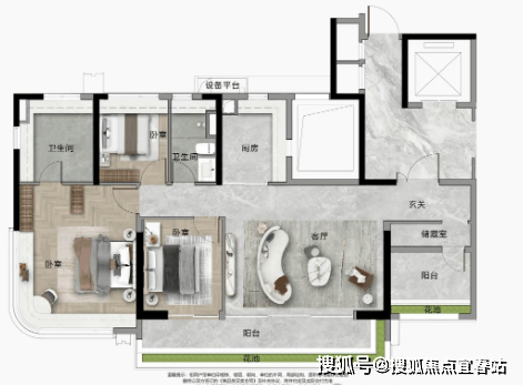 建面约120平方米:尊贵仪式感,极致采光,主卧带阳光衣帽间,宽幕视野。