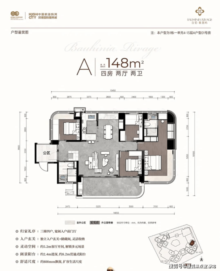 结合前海片区的定位和市场需求,预计将以改善型新规大户型为主,瞄准对前海发展潜力看好的改善型客群和资产配置者。4月9日实体样板房开放。