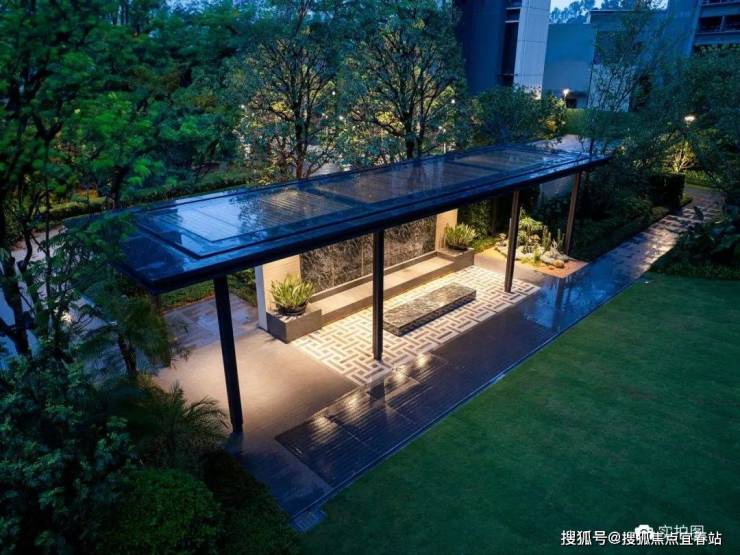 社区客厅,采用会客廊架、仪式树阵景观处理手法,营造社区客厅的仪式感与品质感,家人平时可以在这里临时休息等候,也可以约上三五好友,在这里聊聊天、喝喝茶。