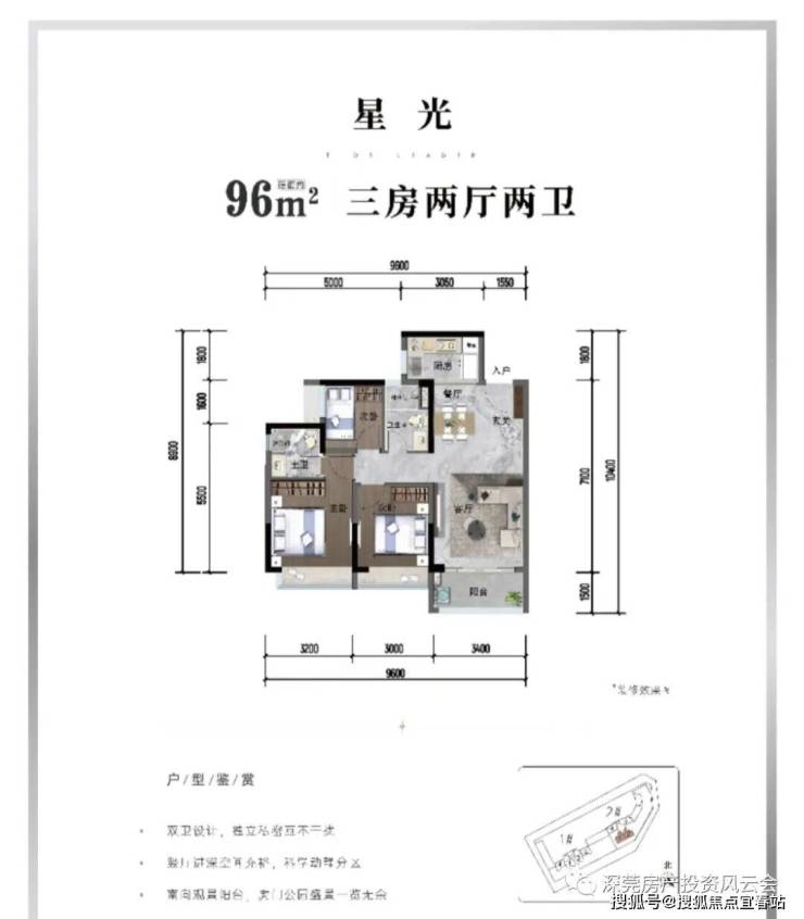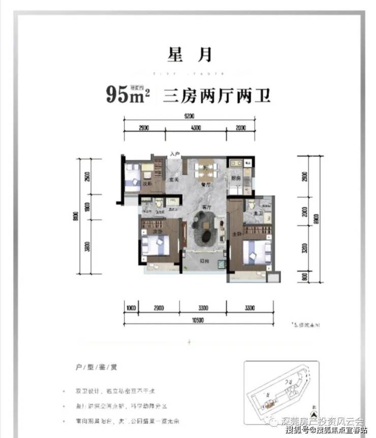 💎户型赏析💎 【1栋01、02户型】约95㎡ 三房两厅两卫