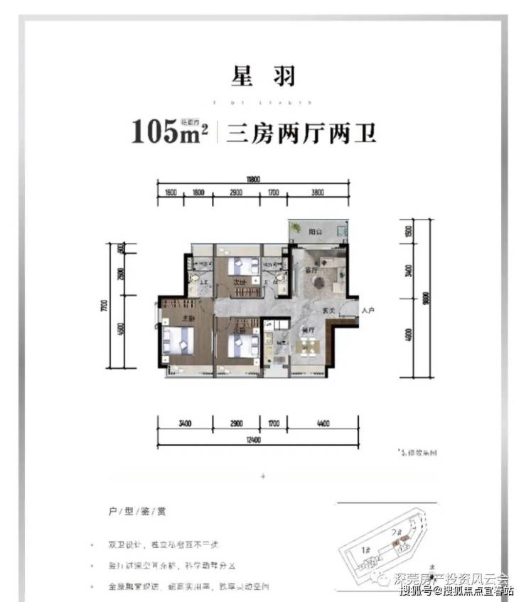 户型优点:南跳虎门公园,整个景观面达10米,直接把千亩园景收藏在家中。户型惊喜也很多,L型厨房、南向大竖厅、三分离式卫浴、可放双门冰箱的大厨房。