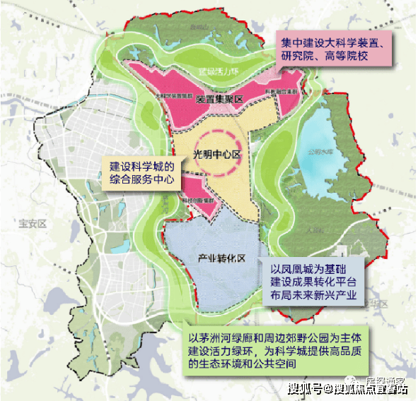 依托光明门户区的高占位,科学城南部凤凰城产业转化区迅速崛起,GDP占光明全区80%,高新企业扎堆,超5000家企业进驻,各级创新平台达100个。