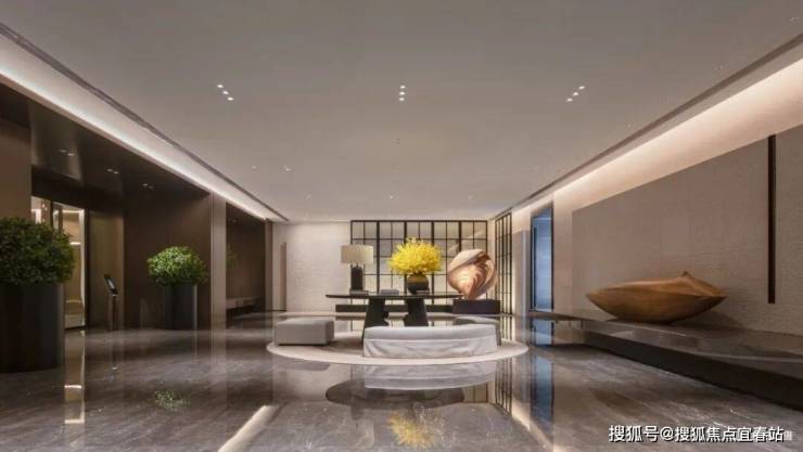 顶奢酒店式入户大堂,石材铺装,打造尊崇的三重归家礼序,开敞阔绰奢豪,搭配多元艺术美陈,媲美深圳湾壹号。