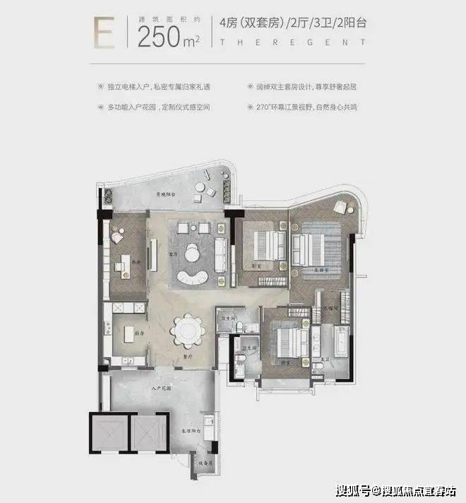 产品亮点:私家电梯入户、有天有地、部分楼层三面采光、约3.4米层高、动静分区南北对流、U型阳台360°观景、约6.8米挑空餐客厅、中西双厨、四套房设计、部分房间带阳台设计