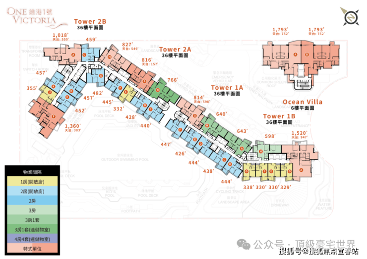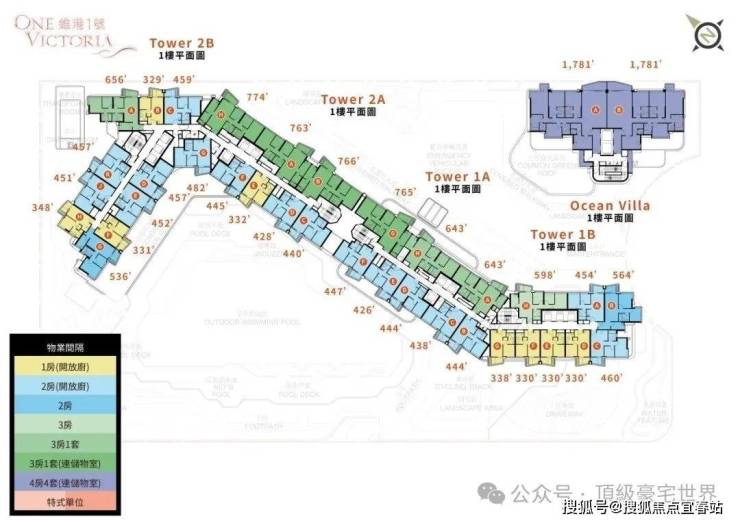 维港1号由两幢高座大厦及一幢低座迎海大宅组成,合共提供 1,059 个一房至四房住宅单位,实用面积由329平方呎至1,793平方呎。