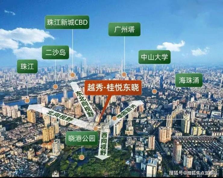 景观升级:东望中大、广州塔;北望二沙岛珠城,西南向直望晓港公园