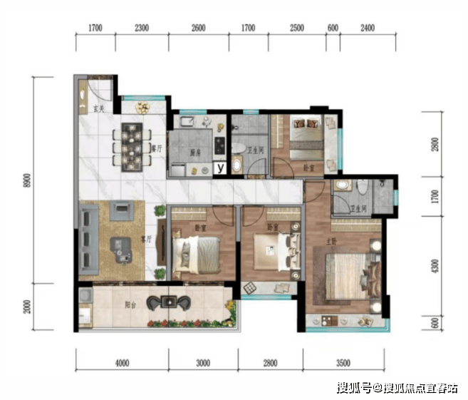 『格局方正 双联景观阳台』:131户型 四房两厅两卫