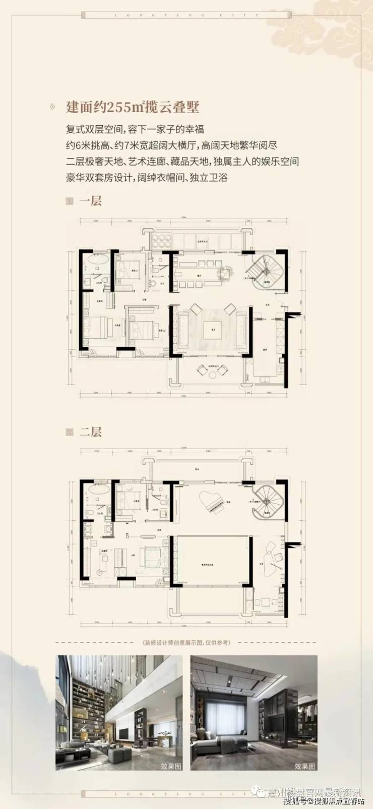 隆腾盛世项目,由惠州市隆腾房地产开发有限公司投资开发,总占地面积约12.5万㎡,总建筑面积约50万㎡,容积率为较低的2.12,总户数2120户,车位总数达到3781个,车位配比超过1:1,是集高品质高扩墅群、舒阔型高层住宅、特色社区商业MALL及商业街等物业类型,配备双语国际幼儿园、泛会所、体育场所,标准游泳池等一站式配套于一身的墅级品质大盘。项目由17栋高层住宅和34栋别墅组成,配备一所双语幼儿园。