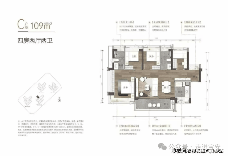 建面约108㎡/109㎡/113㎡/138㎡/143㎡4房,格局方正,打造双飘窗主卧、步入式衣帽间等个性化空间。