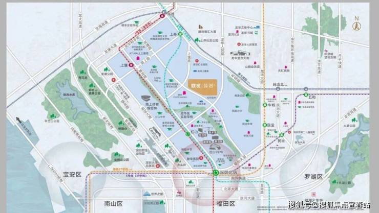 联发臻著雅居所处的红山-上塘板块是龙华区重点发展区域,定位为高端中央居住区(CLD)。这里属于深圳都市核心区,周边汇聚了超200万㎡商业综合体和完善的配套设施。
