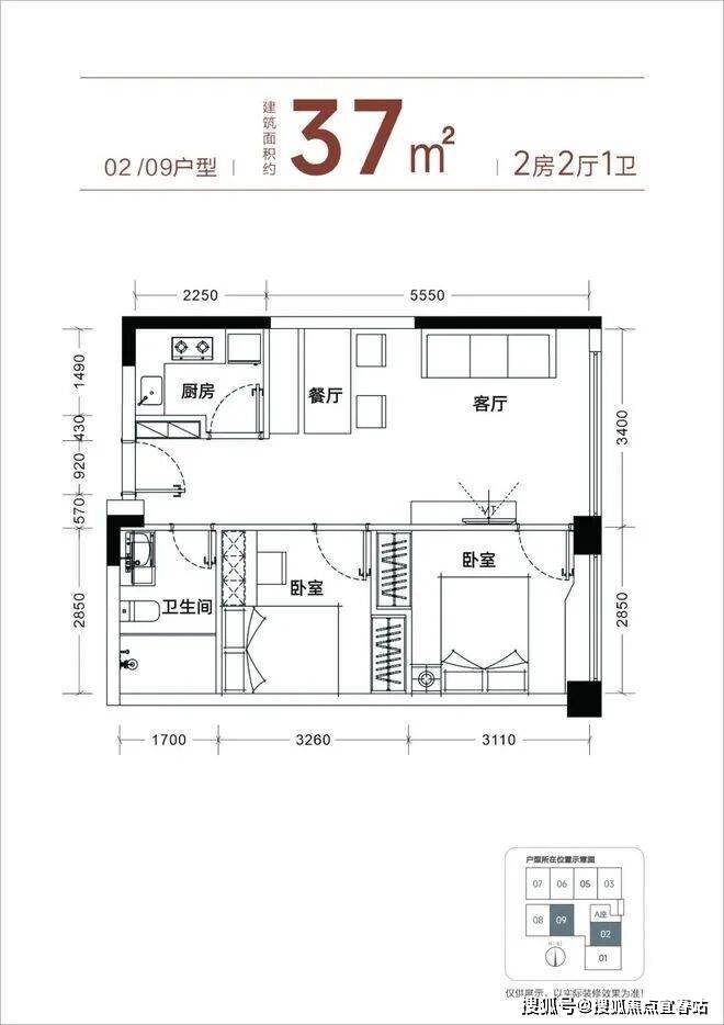 【产品面积】约37㎡小两房(实际套内使用面积接近54㎡)