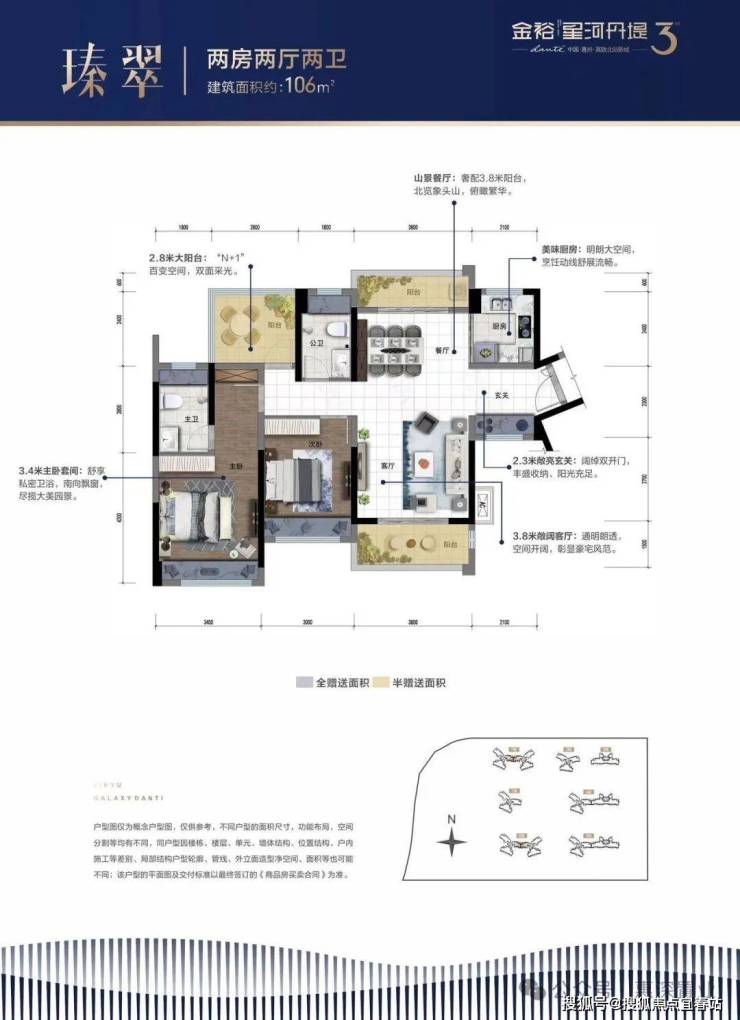 双开发商的背书成为项目的重要标签:深耕惠州31年的金裕集团熟悉本地基因,而拥有AAA信用评级的星河地产2021年创下98%业主收楼率的成绩,在“保交付”成为行业底线的今天,给购房者吃下一颗定心丸。