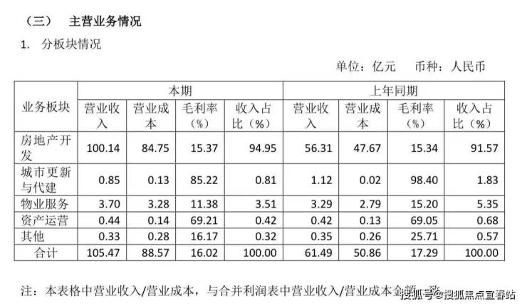报告期内,国贸地产合计营业收入105.47亿元,房地产开发业务占国贸地产收入比例为94.95%;期内,公司房地产开发业务营收100.14亿元,营业成本84.75亿元,毛利率15.37%。