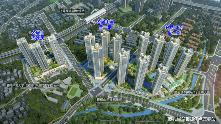 项目总建面约48万平的纯居大城,外享紧邻长约2.4公里的梧桐山河碧道,环山亲水,串联街心公园与滨河绿廊,将都市融入自然,为业主带来享受惬意的慢生活的场所。