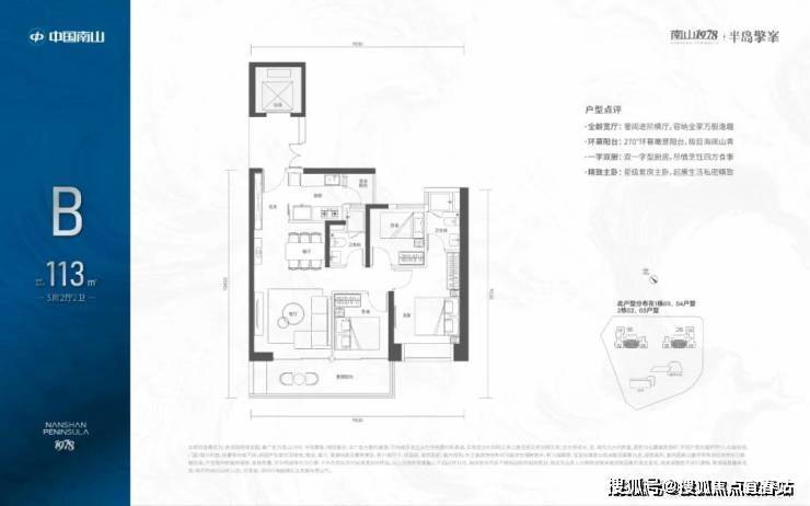 113㎡的3房2厅2卫,设计的是竖厅格局,电梯入户送独立公区,LDKB一体化设计,动静分区,三开间朝南,客厅连接次卧出超大观景阳台,主卧大套间设计,二字型厨房带1个小生活阳台,卫生间干湿分离,得房率:72.07%(不含赠送),西南朝向。深圳南山[琅玥湾佳园]✨【售楼处电话】✅ 400-856-3771(已认证)❇❇