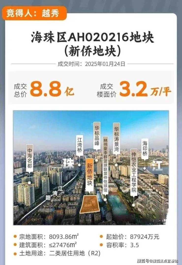 这个项目的进度条,可以说拉得非常快。1月底,越秀地产以总价8.79亿、折合3.2万/平的地价拿下地块,打响广州2025年土拍第一枪;