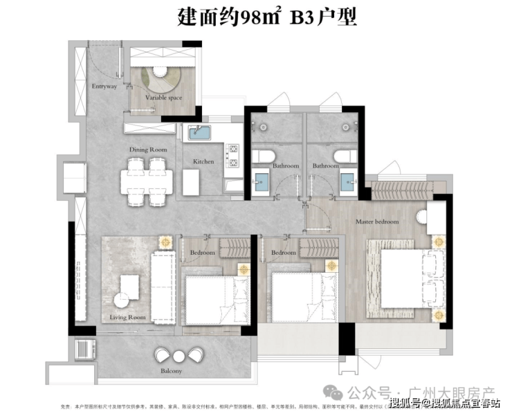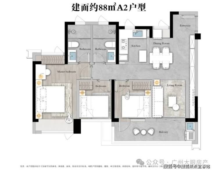 产品以主打刚需,有88㎡、98㎡、108㎡三至四房