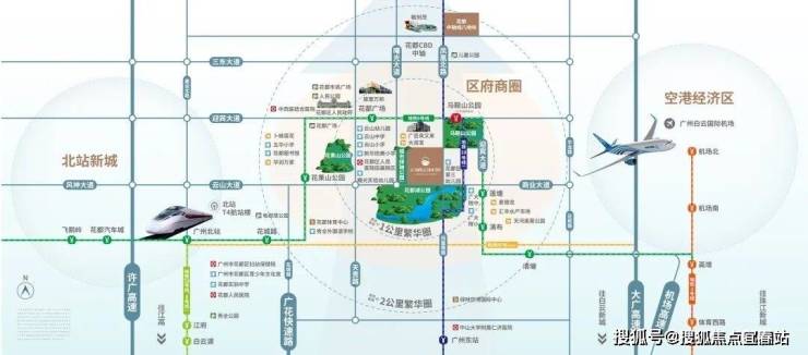 项目位于花都区府中轴线上,媲美广州的珠江新城。同时受空港经济区+广州北站“两大空铁联运”综合枢纽的双重辐射。