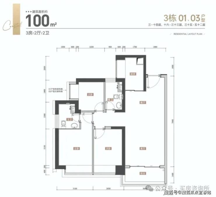 超16米东南采光面,阳台超7米宽;主卧进深4.5米,L型飘窗可270度景观。