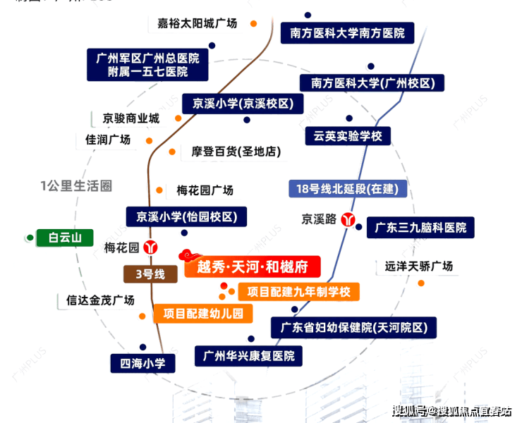 在交通出行方面,项目周边交通网络十分发达。近邻广州大道,这一城市主干道连接着广州的多个重要区域,无论是驾车前往白云山、广州塔等城市地标,还是去往周边的商业区和办公区,都极为便捷。公共交通更是项目的一大亮点,附近有已开通的地铁 3 号线梅花园站,步行可达;在建的 18 号线北延段京溪路站预计 2026 年开通 ,届时将与多条地铁线路实现换乘。18 号线开通后,从项目出发 1 站到东站,2 站到冼村,3 站到琶洲 ,极大地缩短了与城市各大核心区域的通勤时间,为业主的出行提供了高效、便捷的选择。