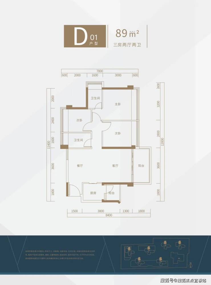 【D-01】建面约89㎡三房两厅两卫