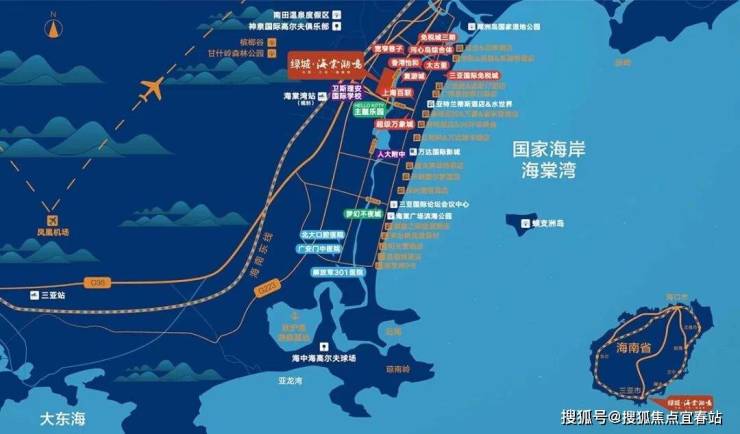 项目坐落在海南三亚海棠湾,往东2公里绵延着21.8公里优质海岸线,凭海凌风,远离喧嚣。地块靠海而不近海特质,既咫尺可达三亚海景资源,又免受近海潮湿环境烦恼。满足“三亚候鸟人群”对旅游度假和健康颐养的多重需求。