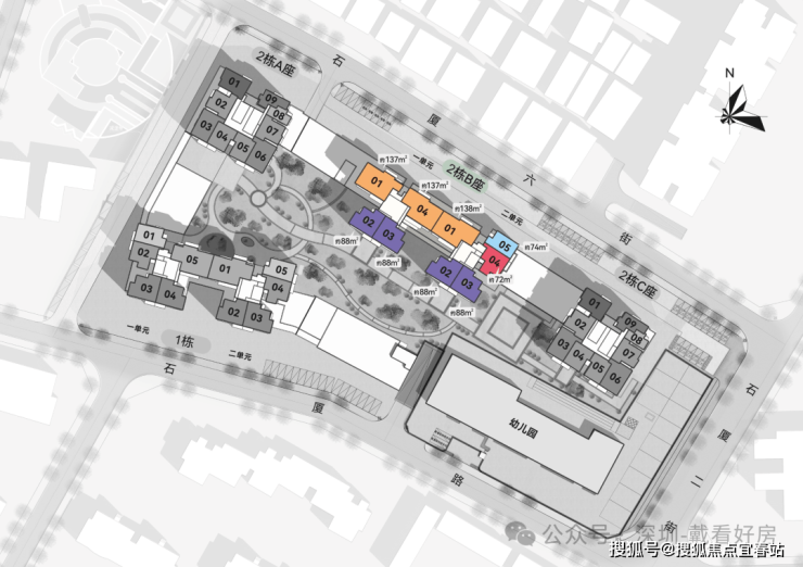 新天石厦铭苑主力户型覆盖刚需至刚改,涵盖72-74㎡两房、88㎡三房、137-138㎡四房,得房率高达86%-90%,部分户型可灵活改造,适配三口之家、多孩家庭等多元居住需求。