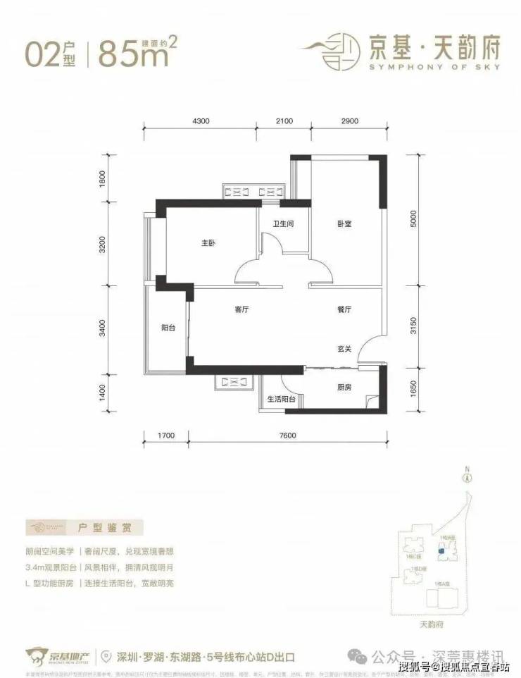 京基天韵府,项目位于深圳市罗湖区东湖街道,东依丹平快速路、深圳水库,南邻布心路,西接东晓路,北至东湖路,距离5号线“布心站”300米,7号线“太安站”700米范围内,属于“双地铁”物业,位置优越,交通便利。