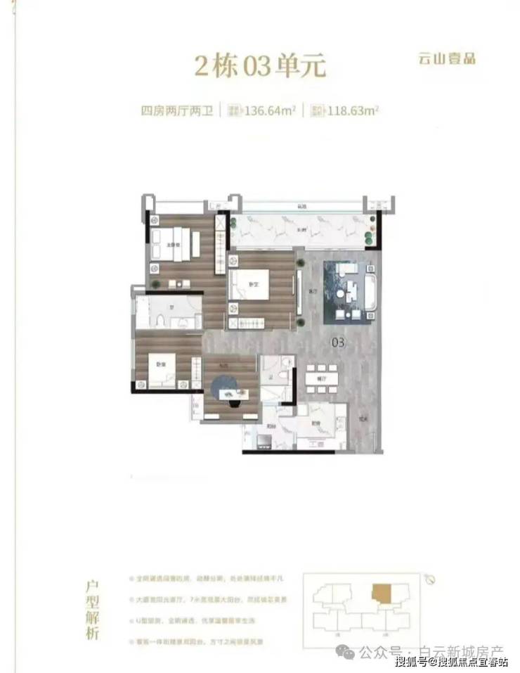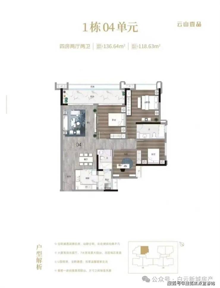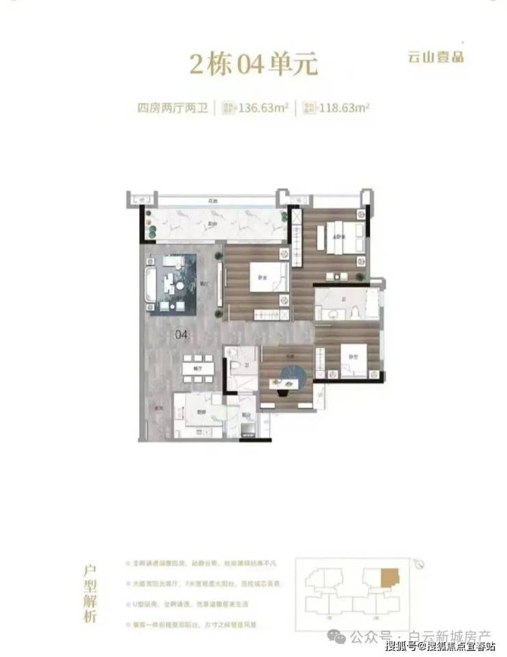 2. 136㎡ 四房二卫户型