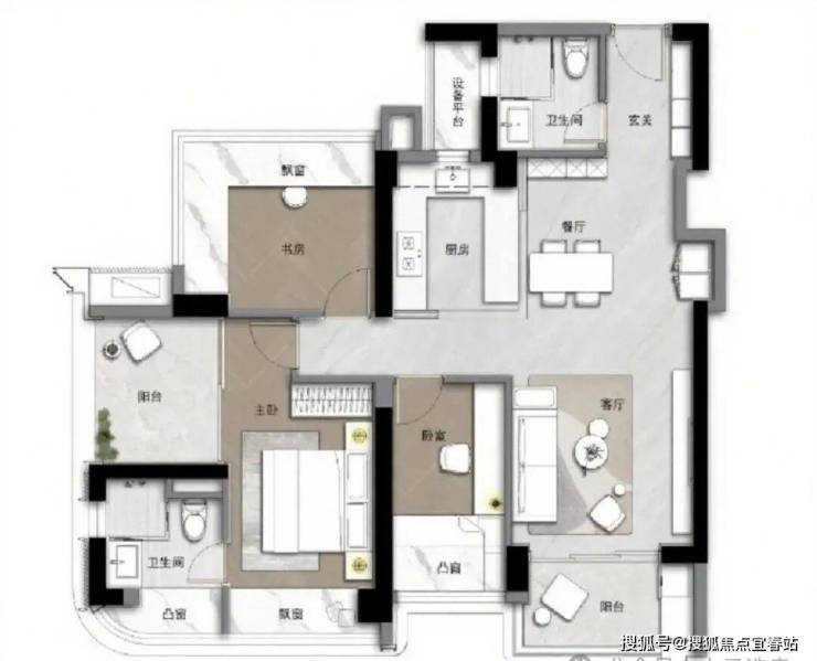 105㎡3+1房