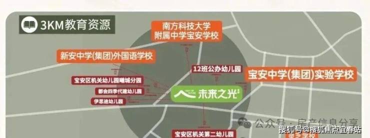 项目内自建幼儿园,3km内南方科技大学附属中学宝安学校(在建中)、宝安中学(集团)实验学校、新安中学(集团)外国语学校、曦城协同学校等学府汇聚