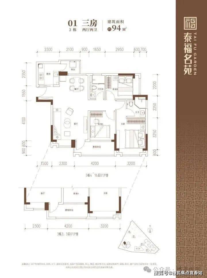 90-102㎡的3房2厅2卫户型。这几个户型都是在主人房多设计一个卫生间,私密性更强,也让家人间的生活更加方便。