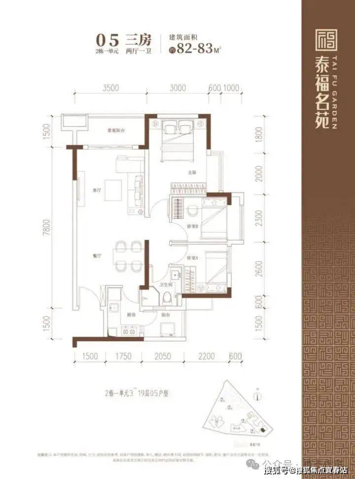 建面约82-83㎡的3房2厅1卫户型,在保证空间尺度感的前提下做到3个房间,实用性高厅设计,厨房餐厅客厅衔接,面积更开阔的同时也做到动静分离,公共活动与私密生活互不干扰。一个细心的设计细节是,厨房旁边设计有生活阳台,可以晾衣服,储存清洁用具,保证景观阳台的干净整洁,让室内环境看起来更加井井有条。