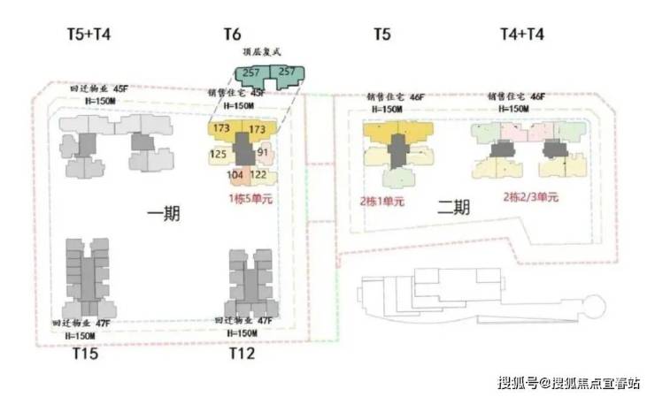 首推入市的住宅产品是「卓越缦悦」西地块(一期)的1-5栋,约232套面积段为约92-105-123-126-173㎡的3-4房,总高45F,5梯6户。