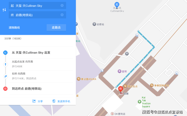 启德天玺·天二期距离港启德站约3分钟步程。从启德站出发:3站九龙东,4站红磡,5站会展,6站金钟,7站中环,10站机场
