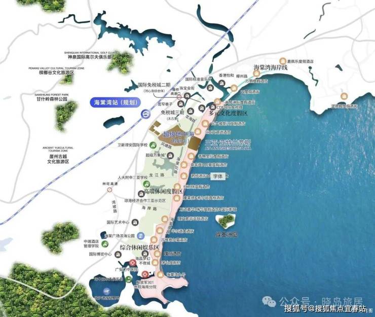 ◎通达交通属性——距离海岸线约 2 公里,距离海南环岛高速路约 4 公里,通往高铁站及机场都十分便利,未来还规划了海棠湾高铁站,建成后出行更加便利。