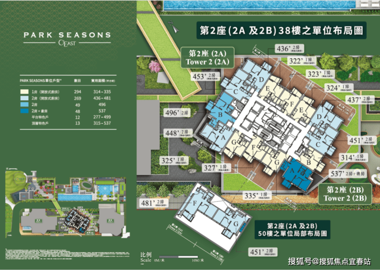 顶层特色户则有13伙,位于3A座及3B座66楼,实用面积为315至537尺,各配置106至437尺天台、22尺露台及16尺工作平台。