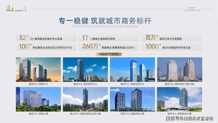 🏙【品质保障 鹭湖唯一专业商务空间开发商】荣超集团——创立于1993年,31年开发运营经验,专注于核心区高端写字楼开发运营,是最早进入福田CBD的专业写字楼开发商荣超物业——国家一级物业管理资质,写字楼物业管理标杆企业,管理面积超260万㎡,荣获“物业服务企业综合实力测评TOP100”、“深圳物业服务企业综合实力百强”