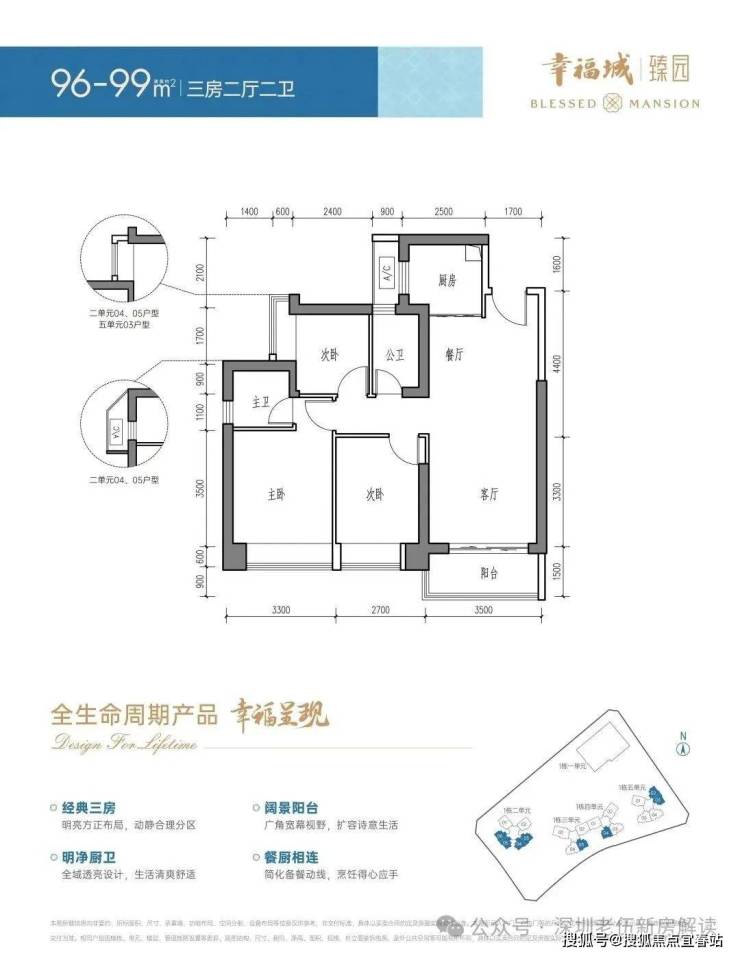 建面约96-99㎡3房2厅2卫