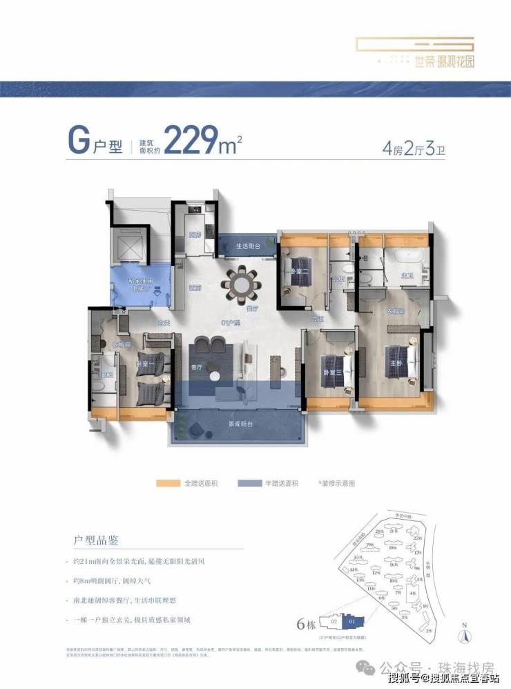建筑面积约104-229㎡3-4房美学平层,着落其间