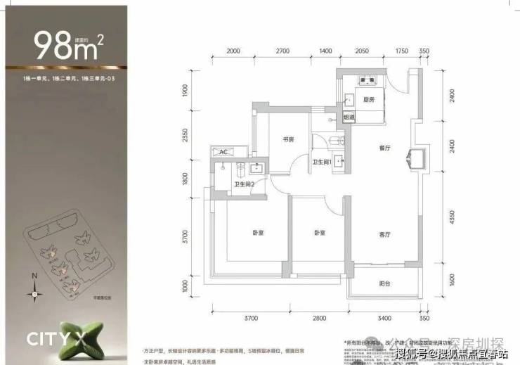 建面约98㎡三房两卫:这款户型更侧重于居住的舒适度与品质感。客餐厅及主要卧室多采用南向布局,确保了充足的采光与优良的通风。公卫巧妙地实现了干湿浴三分离,是对家人生活习惯的细致体贴。鸿荣源观城售楼处电话:400-892-2273