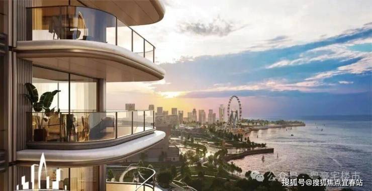 从下方效果图看,外观设计的非常不错,质感满满的,大面积的落地窗玻璃+弧形转角设计,通透性非常好,也能最大程度看摩天轮和海景。