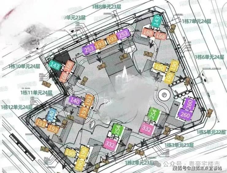 总楼层:最低22层、最高24层,每层布局2至3户,还有地下1层。