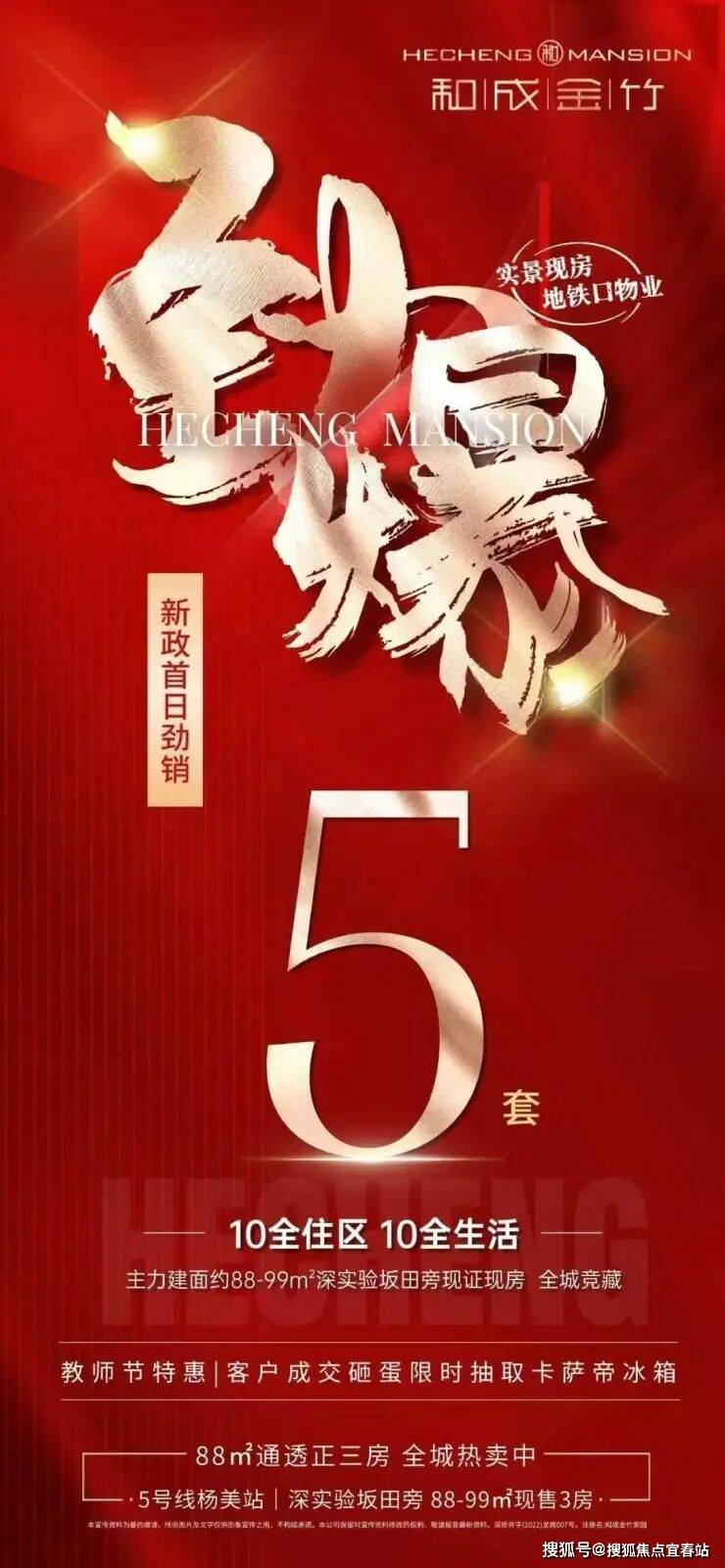最新消息:位于坂田街道杨美地铁口的【和成金竹】即将加推,面积88㎡三房一卫和99㎡三房两卫,楼盘已交楼,已经有业主入住了,现房发售,所见即所得,即买即住。