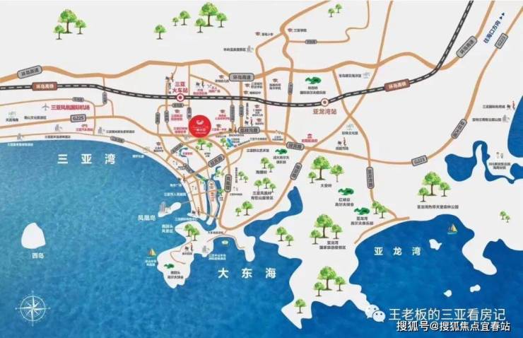【交通配套】:地段绝佳,城市核心区。凤凰路的中段,项目与三亚湾直线距离不到5公里。3分钟可达三亚高铁站、10分钟可达三亚绕城高速、15分钟可达三亚凤凰国际机场。新修建的轻轨电车紧邻项目,步行3分钟即可到达凤凰路站乘坐。