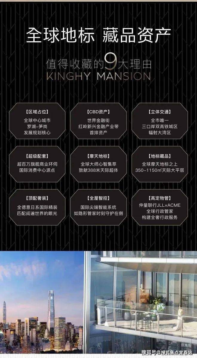 深圳第4,全球第42高楼罗湖【城脉中心•璟喜】仅20席✅现楼发售,精装交付✅550-1150㎡天际大平层在售46层-70层,均价9️⃣万/平1⃣47楼G户型1112.69平单价10万,折后单价9.7万/平。2⃣47楼J1户型575.07平单价8.6万,折后单价8.4万/平。——全球地标,值得收藏——⭐罗湖﹣笋岗,发展规划核心⭐红岭新兴金融产业带首排资产⭐超级配套,超百万旗舰商业⭐摩天地标,388米天际超体⭐地标藏品,超高天际大平层⭐顶配奢装,全德意日国际精装⭐全屋智控,国际尖端智能系统⭐高定物管,仲量联行
